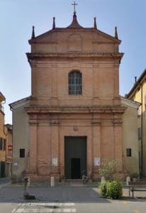 Construction of this church was patronized starting in 1710 by the marchese Scipione Sacrati in conjunction with the Confraternity of the Annunziata. The church was located in front of the Sacrati family palace. The church was built between 1710 and 1713. Alessandro Berti patronized the construction of the facade in 1750. In 1759 he paid for the erection of the main altar. The altar on the left is dedicated to St Roch with a canvas (circa 1730) attributed to the school of Guercino. The church was suppressed in 1799. In 1808, the new Brotherhood of Santissimo Sacramento (Holy Sacrament), took the place of the former Annunziata in care of the church. By 1915, the church had become a store for forage products; only after the second world war, have new restorations been pursued to the church.
